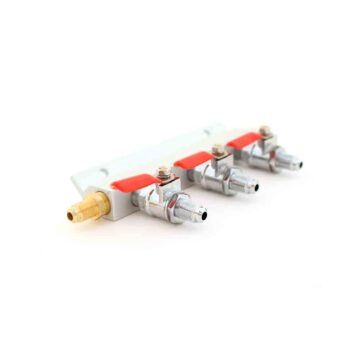 CO2 manifold med 3 utganger og MFL gjenger. Lar deg stenge og åpne hver enkelt utgang. Utrolig praktisk om man har regulator med for få utganger på. F.eks i en kegerator.