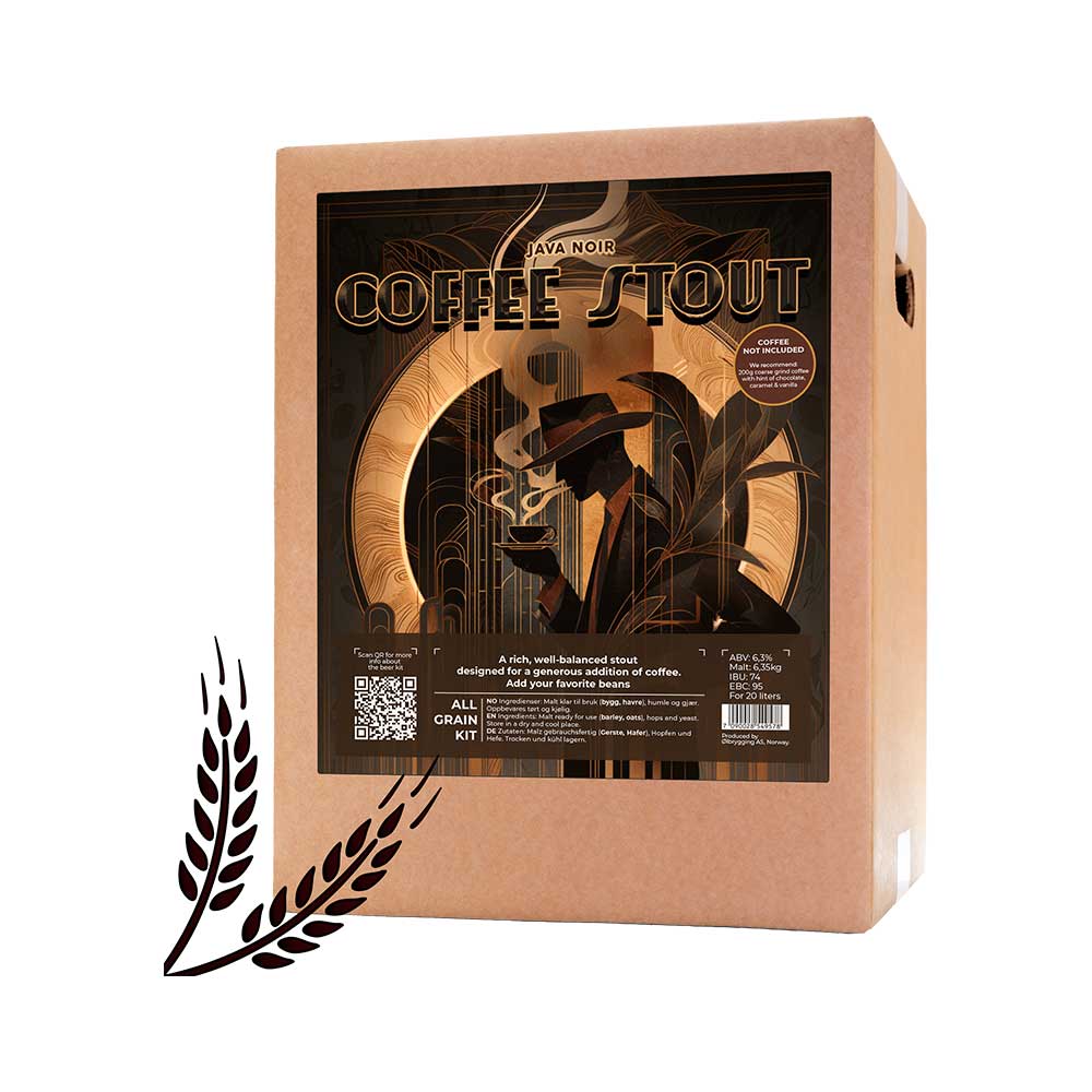 En fyldig velkomponert stout nøye tilrettelagt for en god dose av din favorittkaffe! Dette ølsettet inneholder ingrediensene du trenger til selve bryggingen – kaffe er ikke inkludert, slik at du kan bruke akkurat den kaffen du foretrekker. Oppskriften er tilrettelagt for at smak og aroma fra kaffe skal integreres godt i ølet.
